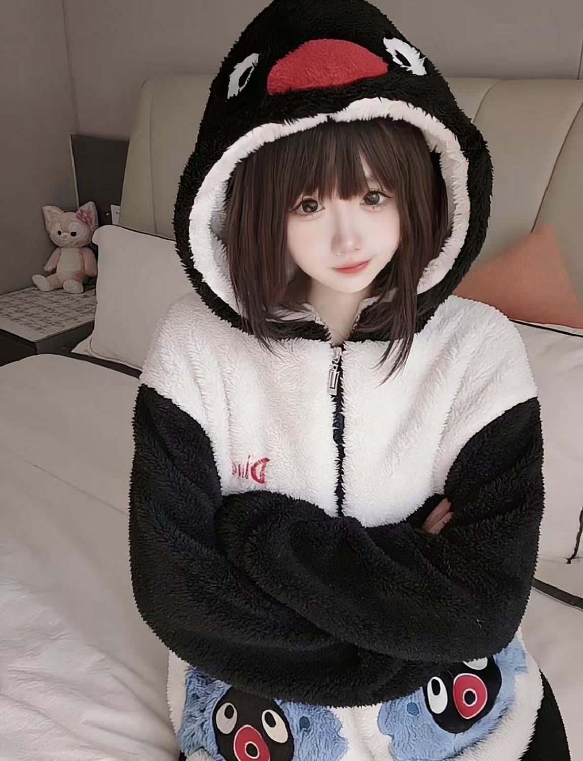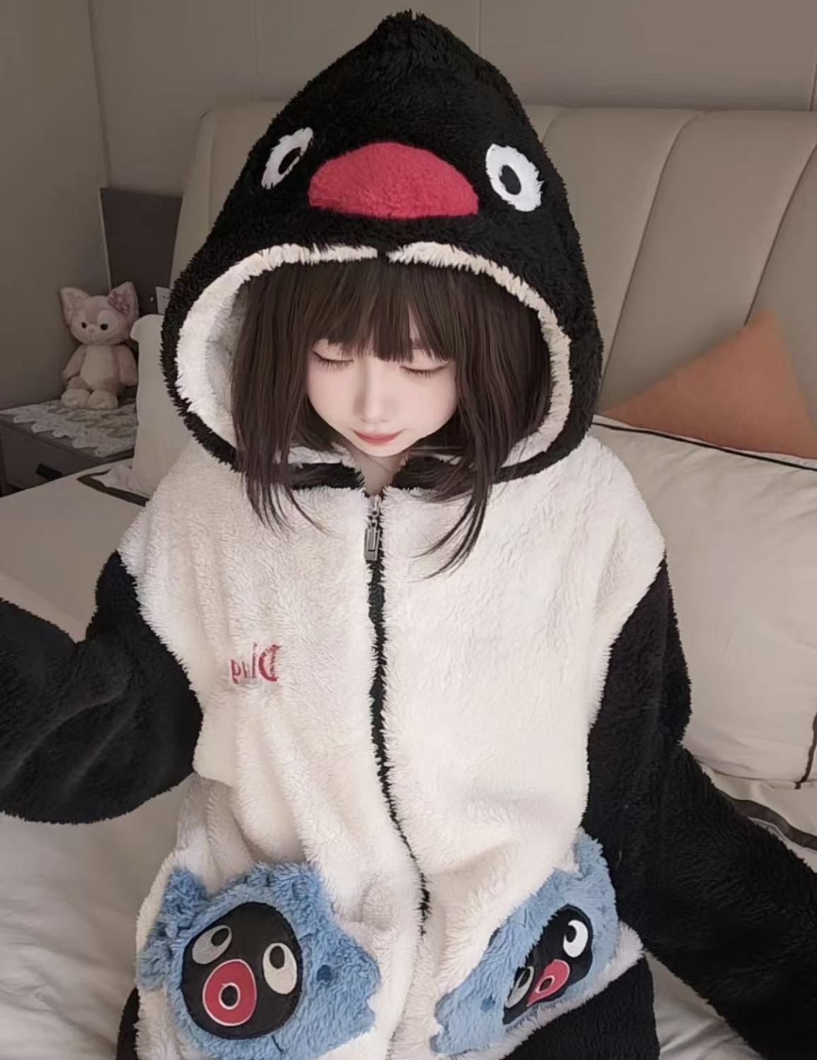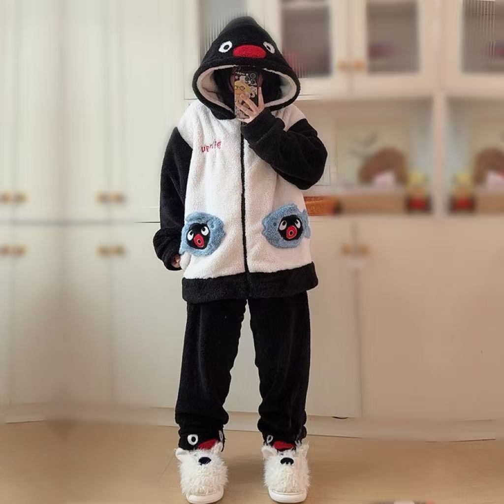 ピングーペンギンもこもこ冬用厚手フード付きパジャマセット