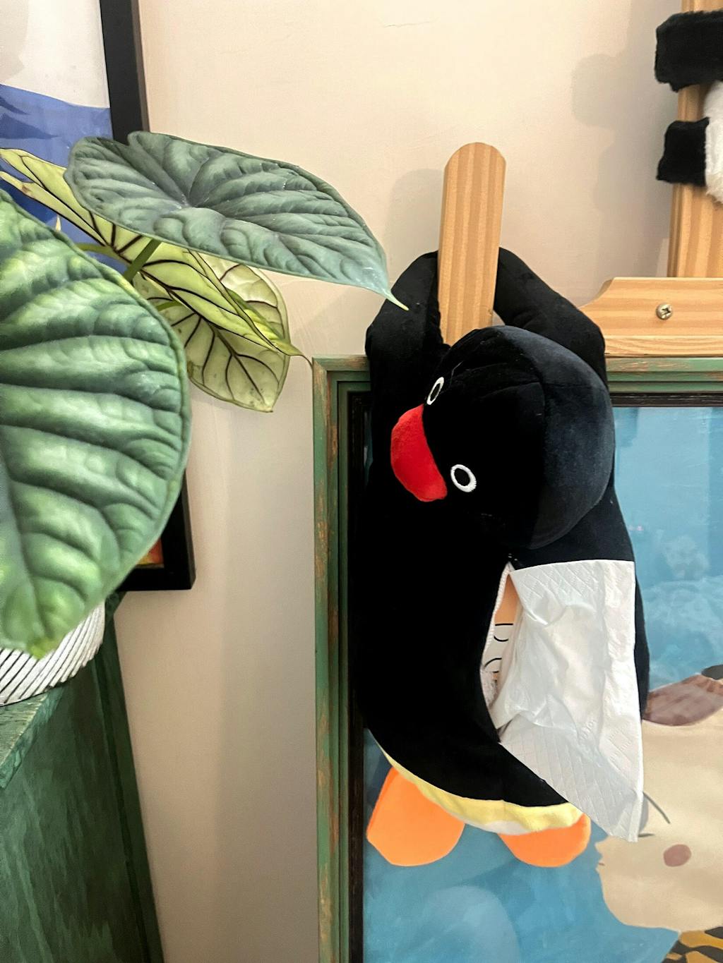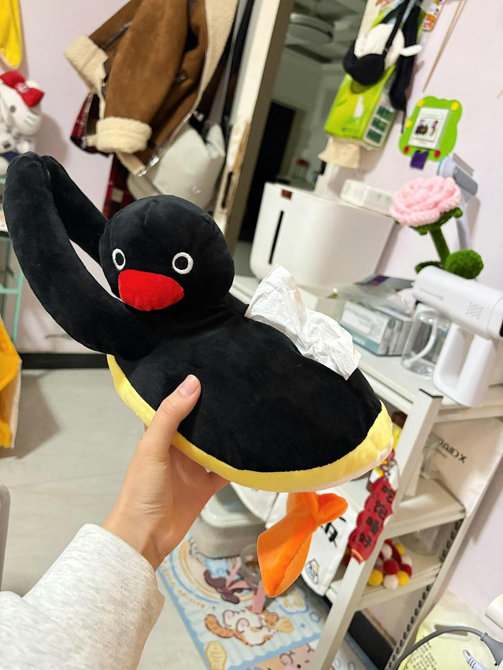 【お部屋に癒やし】ピングーの吊り下げ式ぬいぐるみ紙巾ケース