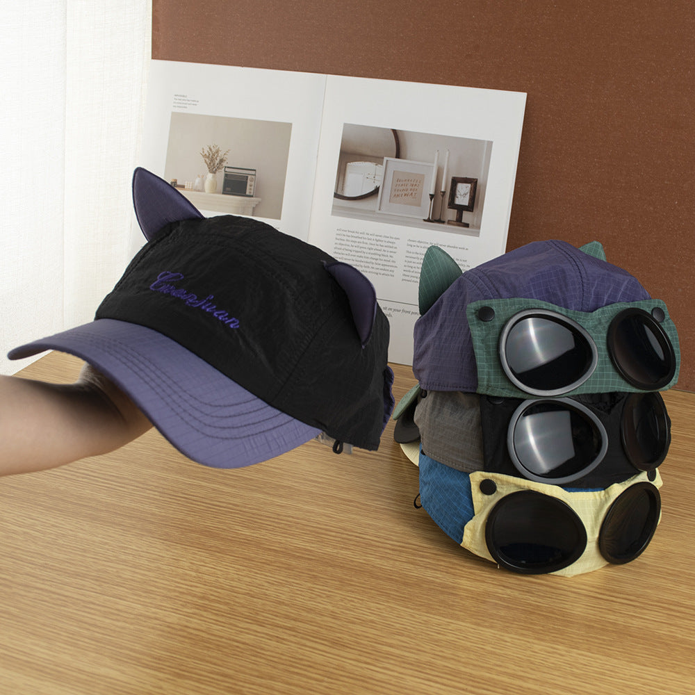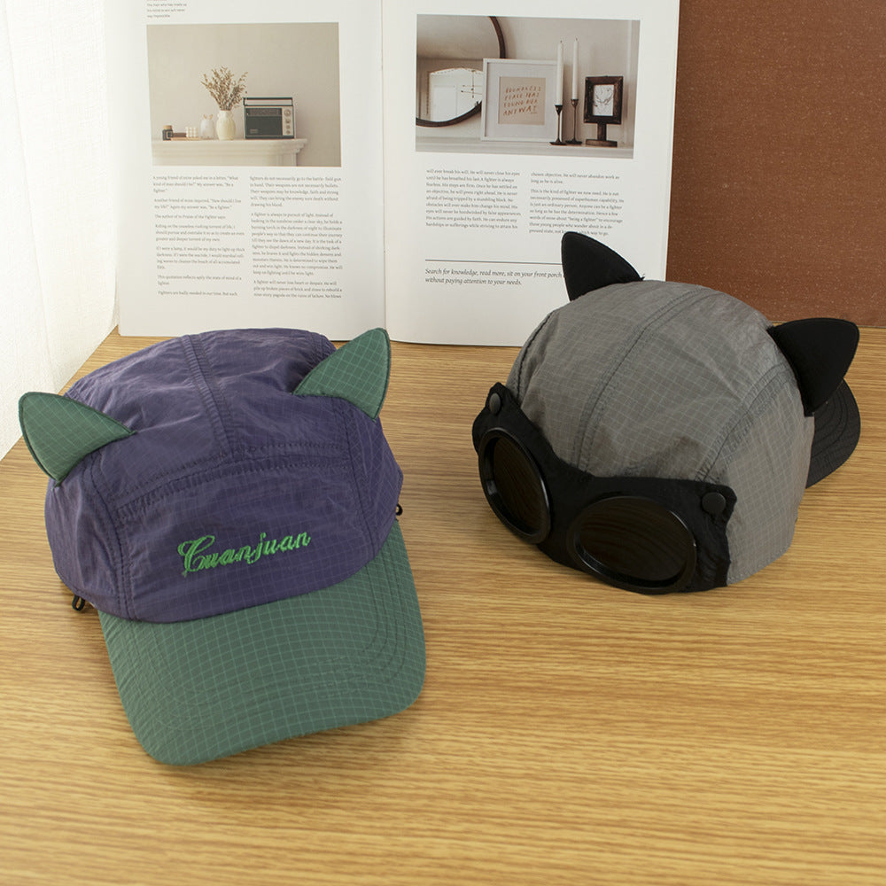 レトロ飛行士キャップ|猫耳&バイカラー速乾キャップ