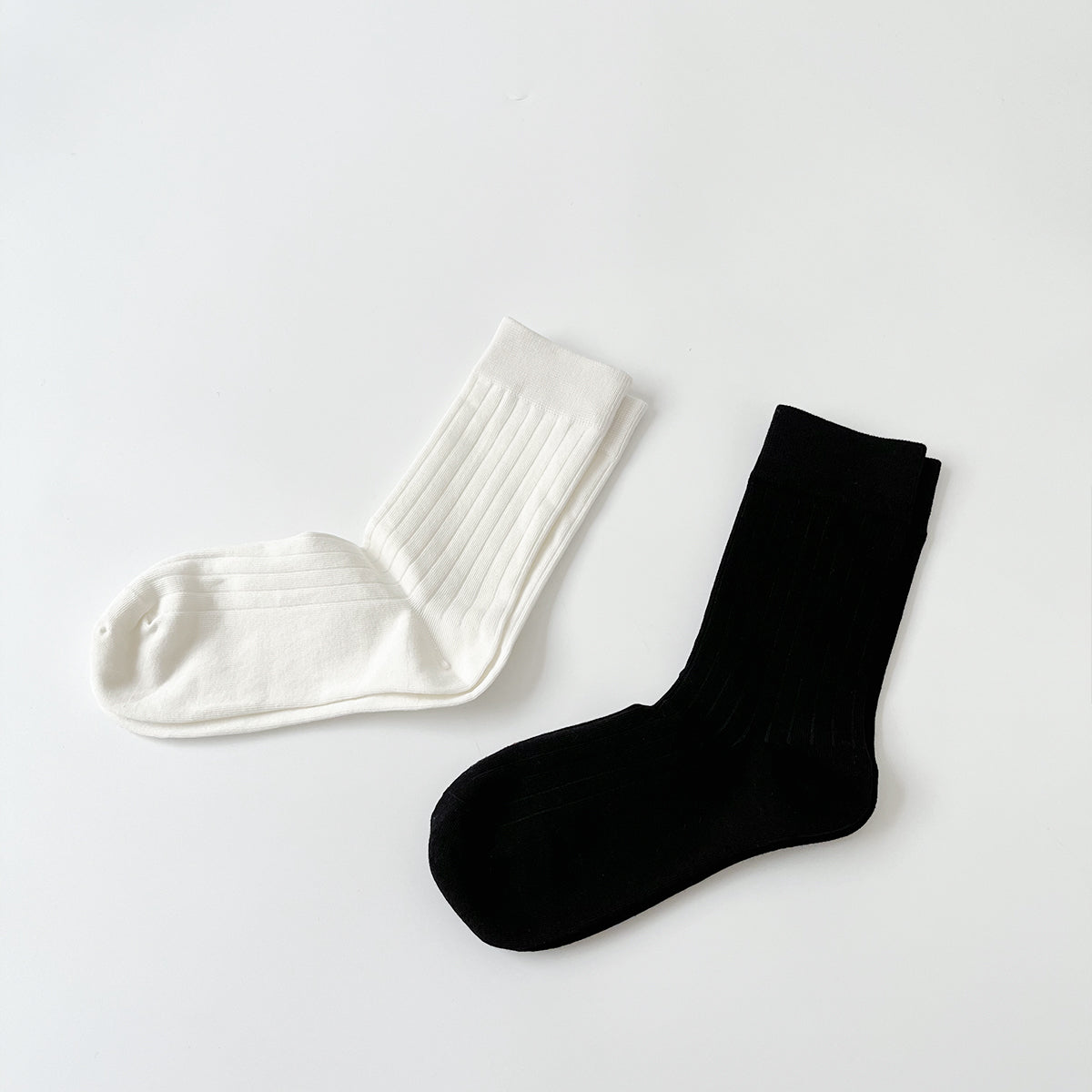 無地リブソックス|秋口にぴったりのシンプル綿中筒ソックス・無骨仕様