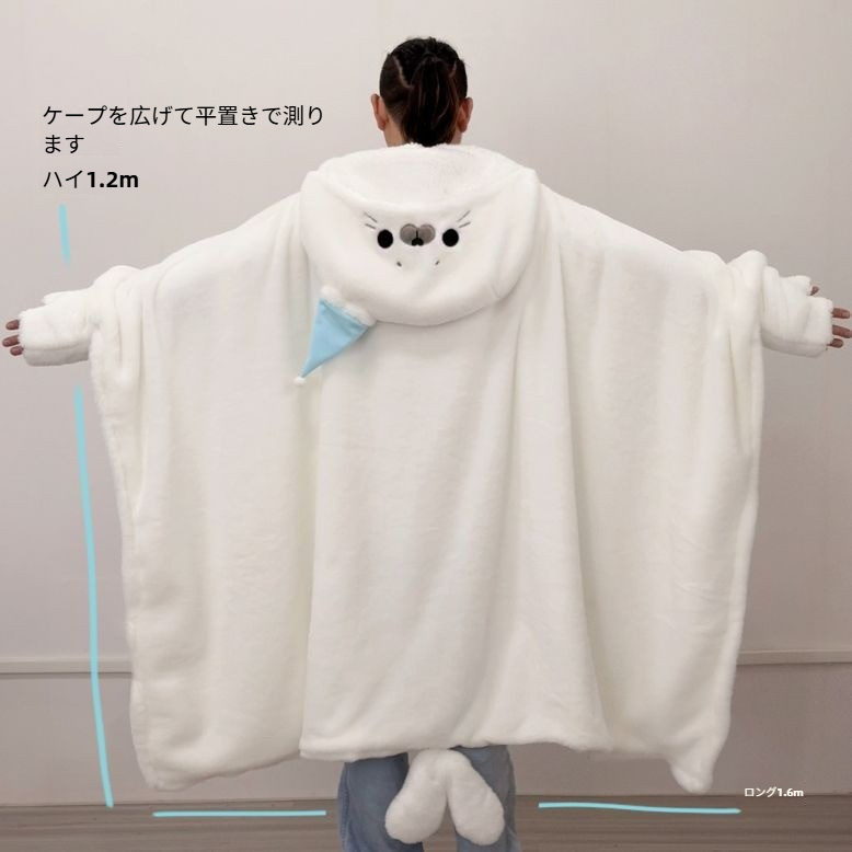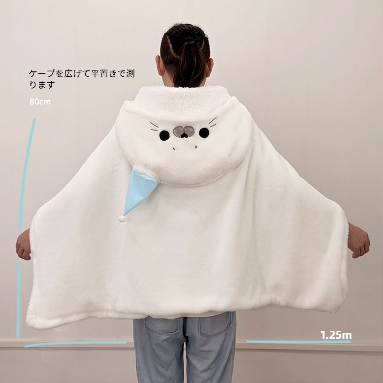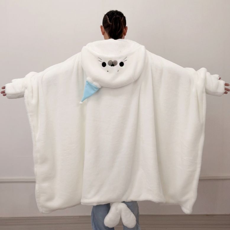 アザラシ着ぐるみブランケット|ふわもこ保暖連帽マント