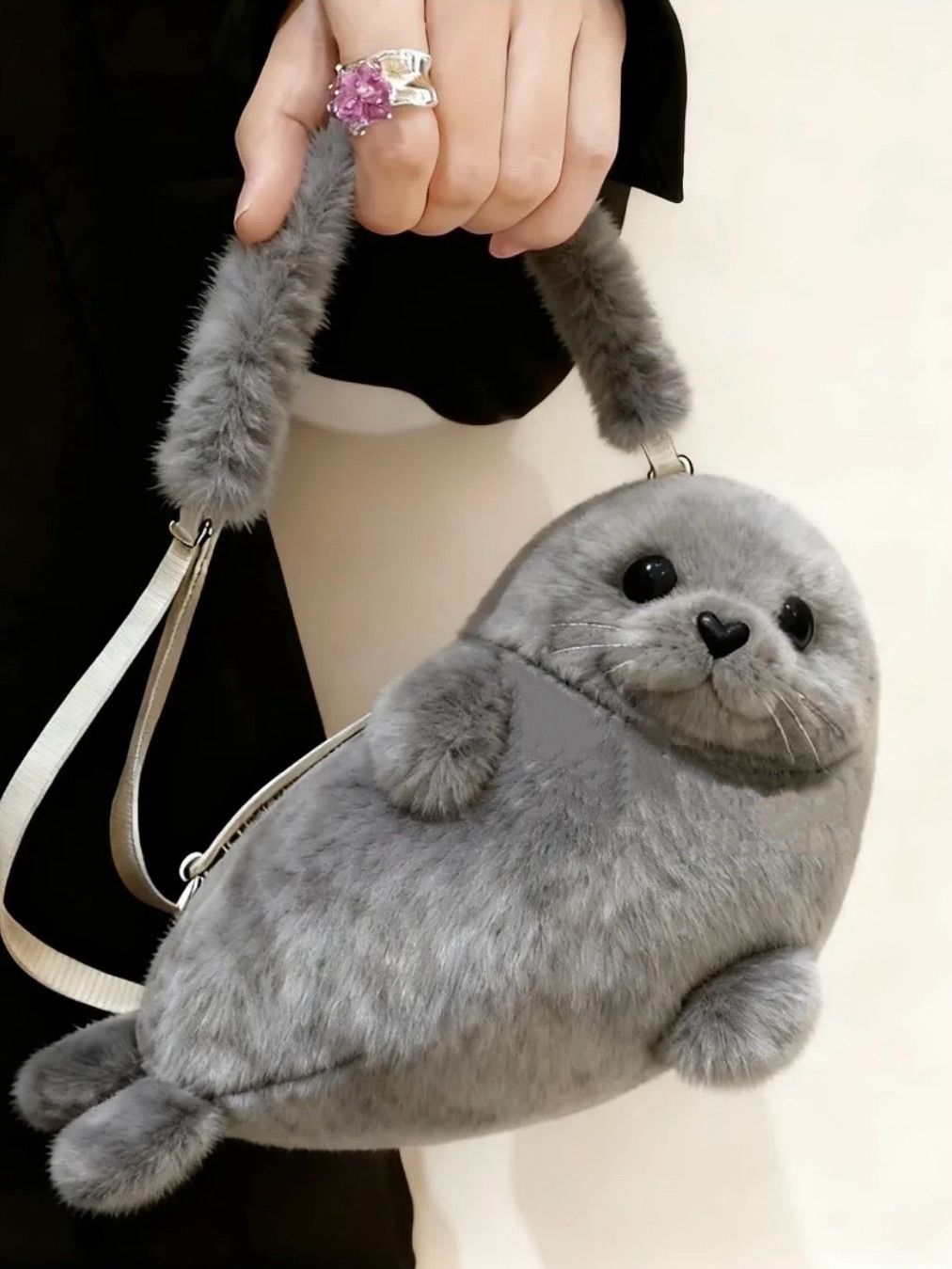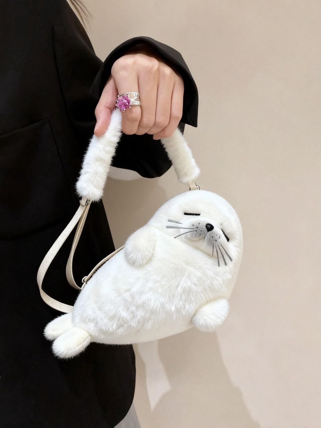 アザラシぬいぐるみバッグ|ふわもこ小動物デザイン