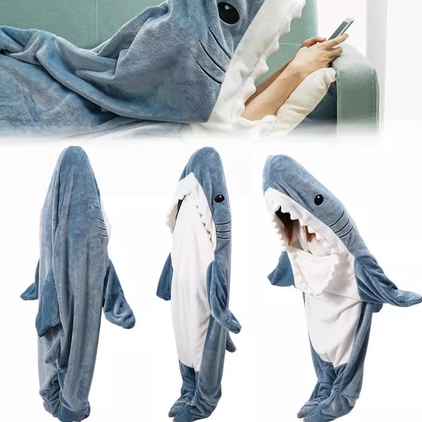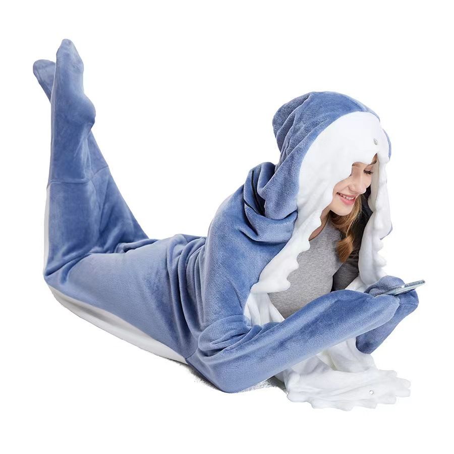 サメ着ぐるみスリーピングバッグ|ふわもこ連体フリースパジャマ